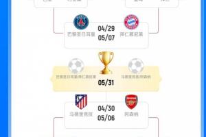体育资讯04月16日讯 欧冠1/4决赛次回合全部战罢,半决赛巴黎将战拜仁、马竞将战阿森纳。