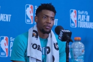 体育资讯4月18日讯 在今天结束的一场附加赛中,黄蜂以90-121不敌魔术。赛后,黄蜂球员布兰登·米勒出席了新闻发布会。以下是完整版采访内容。